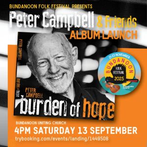 ‘Burden of Hope’ is Peter’s latest offering. A raw and emotional powerhouse of an album. We warmly invite you to be at the lAustralian Launch of Burden of Hope as part of the Bundanoon Folk Festival