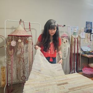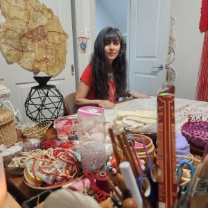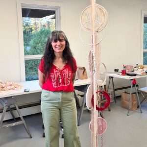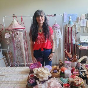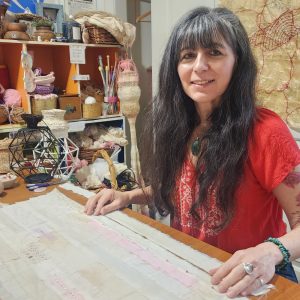 Rosa Daniela Diaz is multi-disciplinary artist living in the Wollondilly Shire. Her practice involves working with, found and repurposed textile materials and mixed media to create woven sculptural forms and installation. Daniela’s art celebrates women, ancient textile methodologies and craft. “I explore body, memory, matrilineal ancestry, and my Uruguayan cultural heritage, rooted in feminist care ethics, reparative practices and transformational processes,” she explained.
