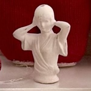 Mouse: Has lived a very long life and, I suspect, quite a few of those years packed tight in a box, causing the flattening of head and face. Mouse is straw-filled with velvet skin and beautiful flappy hands.