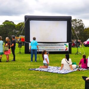 The STA inflatable cinema screen is over 4 metres tall and comes complete with a projector and all necessary equipment suitable for screenings of up to 300 people. We set up, run and pack down everything and can run screening across the STA region.